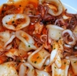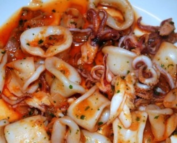Sestavine: 80 dag manj??ih lignjev, velika pločevinka pelatov (80 dag) ali 4 sve??i zreli paradi??niki, 1 dl suhega belega vina, 2 čebuli, 2 stroka česna, olivno olje, peter??ilj, ro??marin, drobtine, sol.