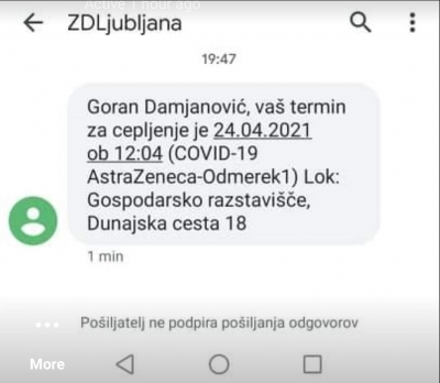 Zdravstveni dom Ljubljana pošilja SMS sporočila tudi tistim ki se sploh niso prijavili na cepljenje (23.04.2021) | newsexchange ... Evo ... | Podobno