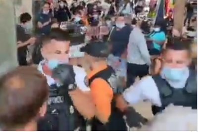 EU-SEARCH NOVICE | Španija: policija poskuša aretirati žensko brez maske, nato pa vsi odvržejo maske in pomagajo ž ...