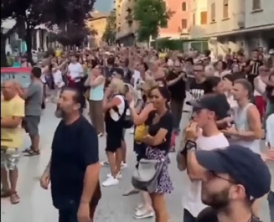 EU-SEARCH NOVICE | Italija, protest proti uvedbi zelenih potnih listov. Pred stavbo nacionalne televizije RAI ...