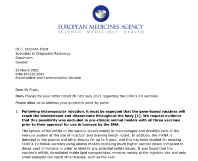 OBJAVLJAMO - ODGOVOR AGENCIJE EMA NA PISMO ZDRAVNIKOV, KI SO ZAHTEVALI USTAVITEV CEPLJENJA ! (10.04.2021) | newsexchange ... Podobno