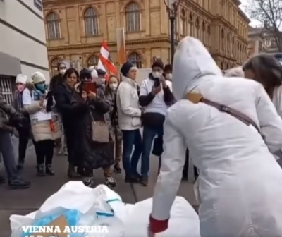 EU-SEARCH NOVICE | Avstrijski zdravstveni delavci pred ministrstvom za zdravje na Dunaju v znak protesta proti obveznemu cepljenju in zelenim potnim listom MEČEJO delovna oblačila ... ...