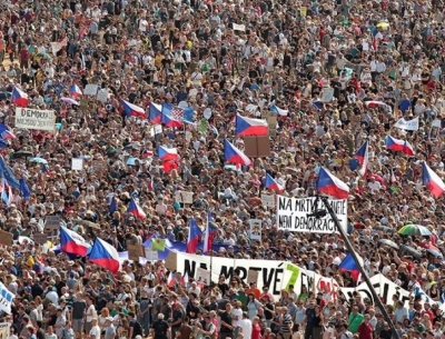 Tako so bili videti množični protesti proti vladi, EU in Natu v Pragi (24.09.2023) | newsexchange ... Več deset tisoč Čehov se je v začetku tedna na povabilo zunajparlamentarne stranke Pravo, pozvene, struka zbralo na Venceslavovem trgu v Pragi, ki so protestirali proti desnosredinski koalicijski ... | Podobno
