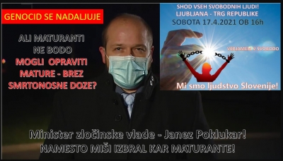 ČAKA NAS MATURA IZ SPLOŠNEGA LJUDSKEGA UPORA (17.04.2021) | newsexchange ... Končno se je zgodilo. Nekdo iz vlade je jasno in glasno povedal, da je "zagovornik demokracije" kot si jo predstavlja le on in njemu podobni. Vedeli smo, da bo slej ko prej prišlo do tega trenutka.Verjamem, ... | Podobno