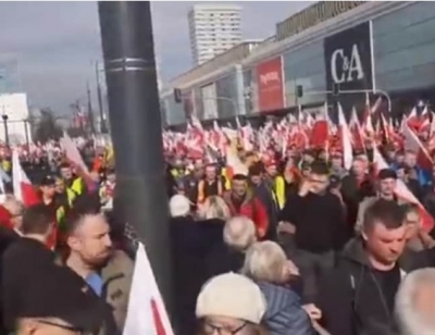 "Sem kmet, ne pa suženj" - Kmetje protestirajo v Varšavi in zahtevajo ustavitev uvoza iz Ukrajine in zeleni dogovor EU (29.02.2024) | newsexchange ... Na največjih demonstracijah doslej od začetka protestov 9. februarja so poljski kmetje in njihovi podporniki vihteli rdeče-bele poljske zastave in nosili transparente z napisom "Brez nas boste lačni, ... | Podobno