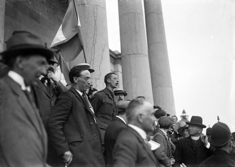 Éamon de Valera, irski politični voditelj, na sliki pred sodiščem v Ennisu leta 1917