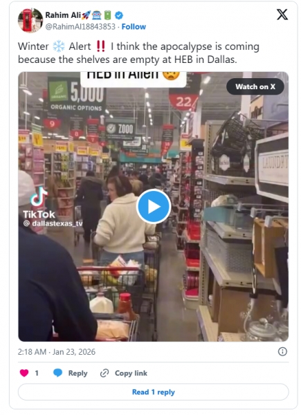 Winter ❄️ Alert ‼️ I think the apocalypse is coming because the shelves are empty at HEB in Dallas.
