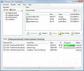 S3 Browser is a free client interface for users of the Amazon S3 and CloudFront service. It provides an easy to use GUI to manage your storage buckets and allows you to upload and download files. ..
