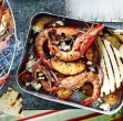 V drugi kozici segrejemo eno žlico olivnega olja in maslo. Dodamo sesekljano čebulo in jo med mešanjem pražimo toliko časa, da postekleni in se zmehča. Dodamo riž in ga med mešanjem na hitro popražimo, da postekleni.