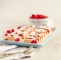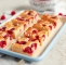 Počasi z lopatko vmešamo po delih sneg in prelijemo v dobro namaščen pekač. Potresemo z malinami in sladkornimi hrustljavčki, če smo se odločili zanje.