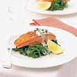 PostopekV ponvi segrejemo olje. Lososove fileje na obeh straneh začinimo s soljo in jih pečemo 4 minute na vsaki strani. Pečene damo na krožnik in jih pustimo počivati, medtem ko kuhamo špinačo.