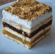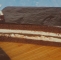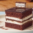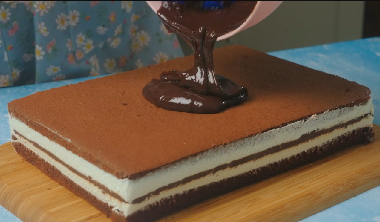 Na biskvit nanesemo polovico kreme, prekrijemo s polovico čokolade in pustimo v hladilniku, da se strdi.