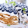Torto iz palačink nato lahko sestavimo popolnoma po svojem okusu. Mi smo se odločili za maskarpone kremo z borovnicami.