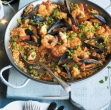 Takrat ji primešamo morske sadeže in ponev pokrijemo. Kuhljamo 5 minut oziroma tako dolgo, da se rakovi repki skuhajo in da se do konca skuha tudi riž. Paeljo pokapljamo z limonovim sokom, posujemo s peteršiljem in postrežemo s krhlji limone.