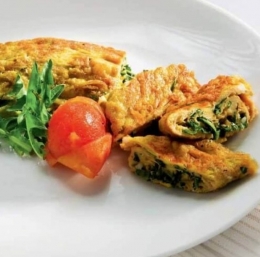 Regratovo omleto z ene strani z lopatico malo privzdignemo in zvijemo proti drugi strani. Preložimo jo na krožnik in postrežemo.