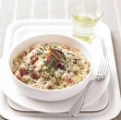 Ribi odstranimo morebitno kožo in jo malo razkosamo. Dodamo jo v ričoto, nato pa še špinačo in peteršilj. Previdno premešamo, da ribe ne zdrobimo preveč. Po potrebi še solimo in popramo. Po želji vmešamo smetano in spet pokusimo, če je dovolj začinjeno. Po želji posujemo z naribanim sirom in postrežemo.