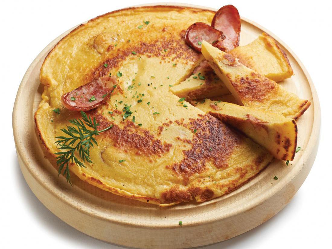 4 jajca 0,5 kg moke 0,5 l mleka 1 žlička soli 35 dag domače klobase 2 dcl olja