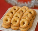 • 350 g večnamenske moke • 120 g sladkorja • 100 ml rastlinskega olja • 100 ml belega vina • 2 čajni žlički pecilnega praška • sladkor v pravu za posip (po potrebi) • kristalni sladkor za posip pred peko Postopek