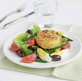 Solata s hruško, datlji in orehi ter prelivom iz sira z modro plesnijo