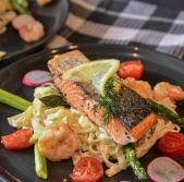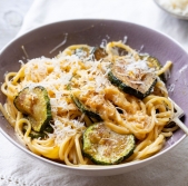 Slastne testenine s kozicami, zelenjavo in špinačo