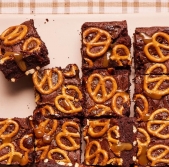 Čokoladni browniji s prestami in karamelo