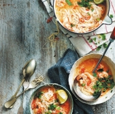 Pikantna juha laksa z rezanci, kozicami in karijem