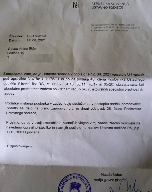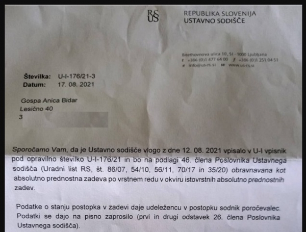 Vam zaupam, da sem jaz zahta takojšnjo ZAUSTAVITEV izvajanja PCT! V kolikor bo ustavno sodišče zavrnilo mojo pobudo vedite, da so s tem porušili ustavne temelje Republike Slovenije, ki temelji na spoštovanju človekovih pravic.