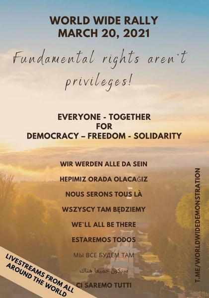 Bliža se NAJVEČJI PROTESTNI SHOD V MODERNI ZGODOVINI, 20.3.2021 , v več kot 40 državah! ODŠTEVAMO!
