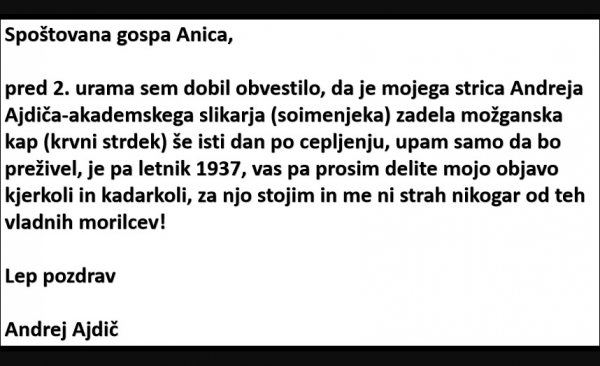 Vsem ostalim pa v razmislek, da ta snov, ki jo vbrizgavajo ljudem ni cepivo, ker nima uradne registracijske potrditve.