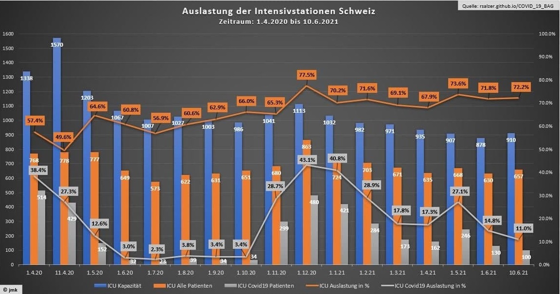 Intenzivni oddelki v švicarskih bolnica v zadnjih 15 mesecih niso bili niti približno na meji preobremenjenosti.