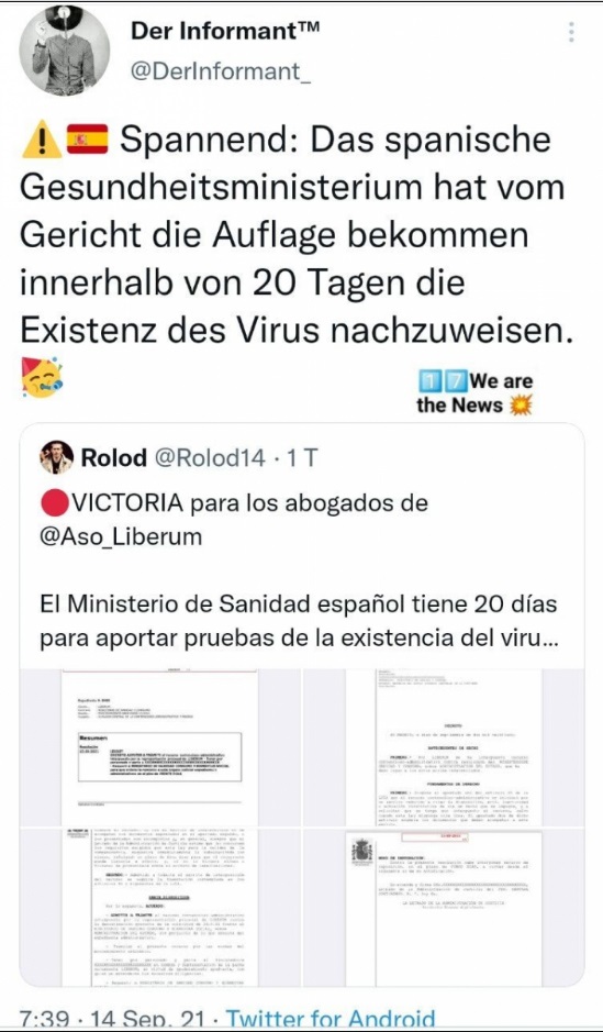 Ministrstvo za zdravstvo Španije je dobilo nalog od sodišča, da v 20.dneh dokaze obstoj virusa. Postaja vroče!