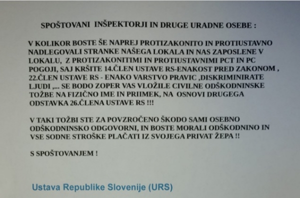 Sprintajte si, in nalepite na vrata oz. Pri vhodu v vaš lokal ! In uradne osebe- inšpektorje, policiste,... vljudno pozovite, naj si to preberejo !