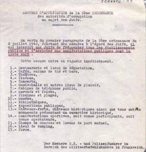 ŽIDOM je prepovedano obiskovati vse javne ustanove in se udeleževati javnih shodov z naslednjega seznama: