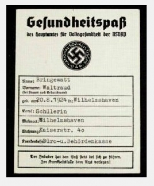 Naslednja slika (vir) prikazuje zgodovinski dokument iz Tretjega rajha: