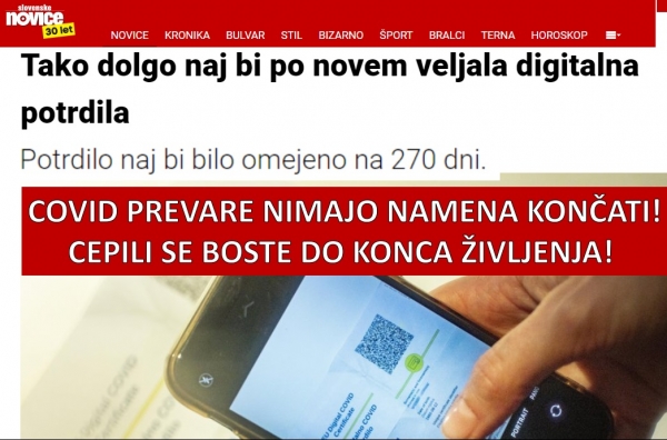 Veljavnost digitalnega covid potrdila za osebe, cepljene z osnovnim cepljenjem, omejena na 270 dni. Po tem času bo potrdilo nehalo veljati in bo za obnovitev potrdila potreben poživitveni odmerek.«
