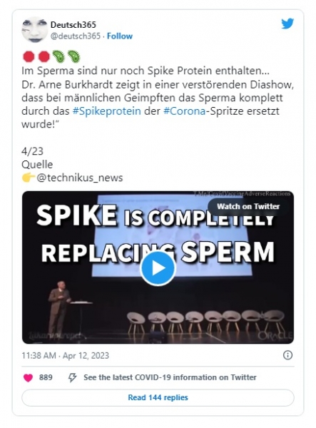 V spermatogenem tkivu je močno kopičenje koničastih beljakovin. Enako velja za starejše ljudi. To je star človek [85 let, NB] in tukaj lahko vidite tudi močan izraz spermatogonije. V njej ni niti ene semenčice. In obstaja močna ekspresija koničastega proteina. Torej, če smem dati osebno pripombo, to ni znanstvena pripomba. Če bi bila ženska v rodni dobi, ne bi načrtovala otroka s cepljenim moškim. Te slike se mi zdijo zelo moteče.