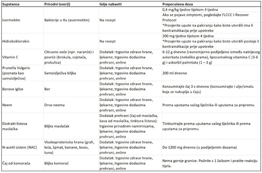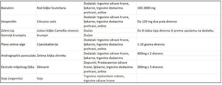 Tabela 1. Zdravila in dodatki, ki lahko pridejo v poštev (hrvaški jezik):
