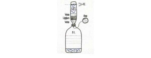 Vse kar potrebujete sta dve plastenki, ena 1,5 l in ena večja od 5 l, medicinska vata, ena najlonska nogavica in aktivno oglje.