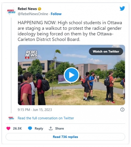 Ottawski srednješolci, ki zapuščajo svoje učilnice, so le zadnji primer učencev, ki se zoperstavljajo propagandi LGBTQIA2S+ v šolah.