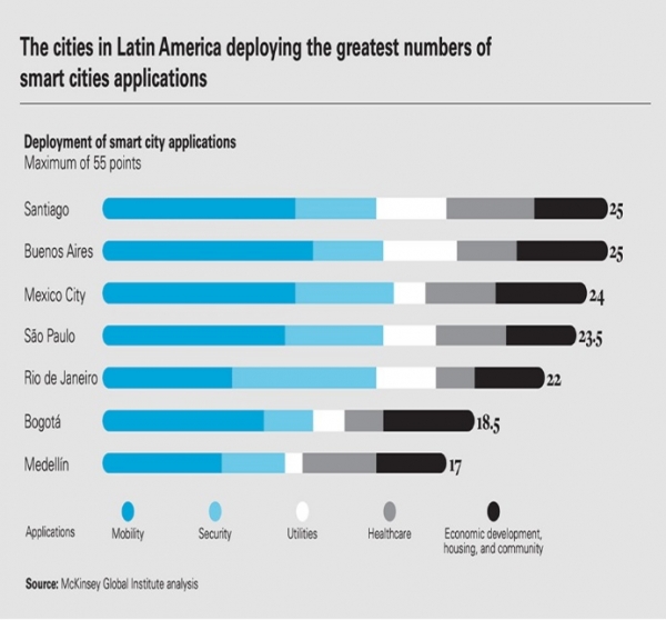 In res, premika se s polno hitrostjo. V Rio De Janeiru na primer 450.000 uličnih luči zamenjajo z LED-lučmi, opremljenimi s 5G. Spodnja tabela prikazuje, kako se velika mesta v Latinski Ameriki spreminjajo v pametna mesta.