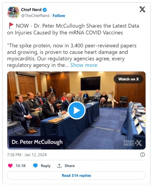 McCulloughovo močno pričevanje je osupnilo prisotne, potem ko je razkril pravi obseg škode, ki so jo povzročila cepiva proti covidu.