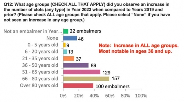 Balzamerji so poročali o splošnem povečanju vseh vrst strjevanja v vseh starostnih skupinah – še posebej pri tistih, starih 36 let in več –, kar je skladno z dejanskimi podatki iz zavarovalniške industrije, ki kažejo, da mlajši ljudje prejemajo višje nadomestila ob smrti, je dejal Haviland.
