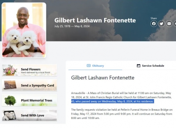 8. maj 2024 - Louisiana - Gilbert Lashawn Fontenette, 45, medicinski tehnik, je 8. maja 2024 nenadoma umrl na svojem domu.