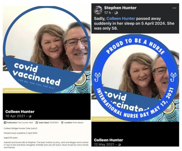 5. april 2024 – PREMINULA AVSTRALSKA MEDICINSKA SESTRA – Colleen Hunter, 58-letna avstralska medicinska sestra iz Palm Beacha, je 5. aprila 2024 nenadoma umrla v spanju.