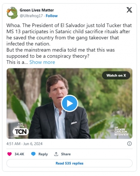 Govor srednjeameriškega predsednika o članih tolp, ki so tarče množičnih aretacij, sledi obsežni debati s Carlsonom, ki je bila predvajana v sredo X.