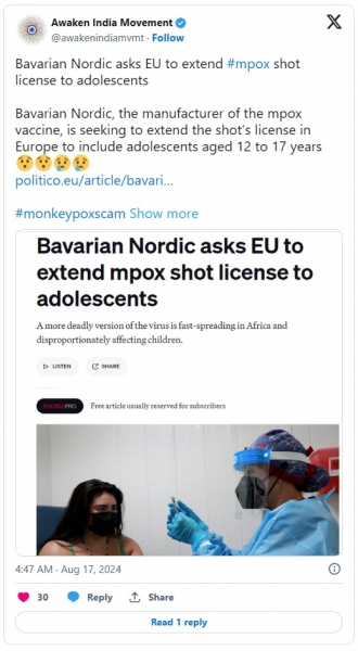 Proizvajalec cepiv Bavarian Nordic je napovedal, da bo zaprosil za odobritev svojega cepiva Mpox za otroke in mladostnike, stare 12 let in več, v EU. To je povzročilo kritike strokovnjakov, ki dvomijo o potrebi po takšni odobritvi.
