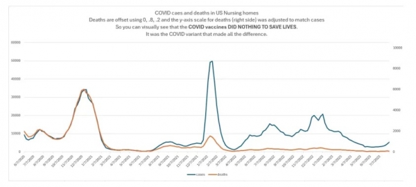 Podatki iz 15.058 ameriških domov za ostarele, ki jih je zbral Medicare, nedvoumno dokazujejo, da cepiva proti covidu niso NIČ o zmanjšanju umrljivosti zaradi COVID-a . Bile so samo pomanjkljivosti. Prav različice COVID so spremenile stopnjo umrljivosti; cepiva niso naredila prav nič. Kako bi lahko CDC spregledal to očitno točko?