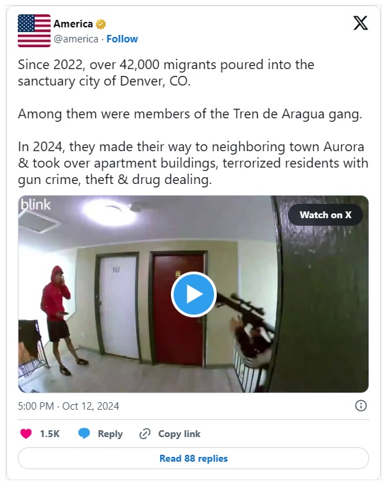 Šokantno novo poročilo je razkrilo, da je venezuelska nadnacionalna tolpa Tren de Aragua prevzela najmanj štiri stanovanjske komplekse v San Antoniu v Teksasu, medtem ko na tisoče njenih nezakonitih gangsterjev divja po vsej državi ter širi kriminal in uničenje od Kolorada do Teksasa do New Yorka. York. Številni člani zaporniške tolpe oboroženih migrantov so vdrli v državo preko Biden-Harrisovih odprtih južnih meja.