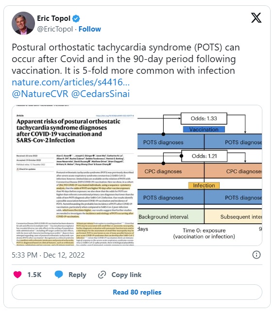 Da bi prišli do teh zaključkov, so raziskovalci analizirali podatke 284.592 cepljenih bolnikov in 12.460 bolnikov, ki so zboleli za COVID-19 znotraj zdravstvenega sistema Cedars-Sinai med letoma 2020 in 2022. Analiza je pokazala, da so se možnosti za razvoj POTS povečale v 90 dneh po izpostavitvi virusu ali cepivu, vendar so bile možnosti znatno višje po okužbi..