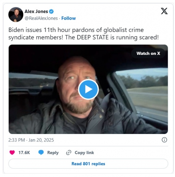 V teh zadnjih urah Bidnovega predsedovanja je izdal obsežno preventivno pomilostitev za svoje različne privržence, ki so v zadnjih štirih letih izpolnji njegove (ali njegove marionete) naloge..